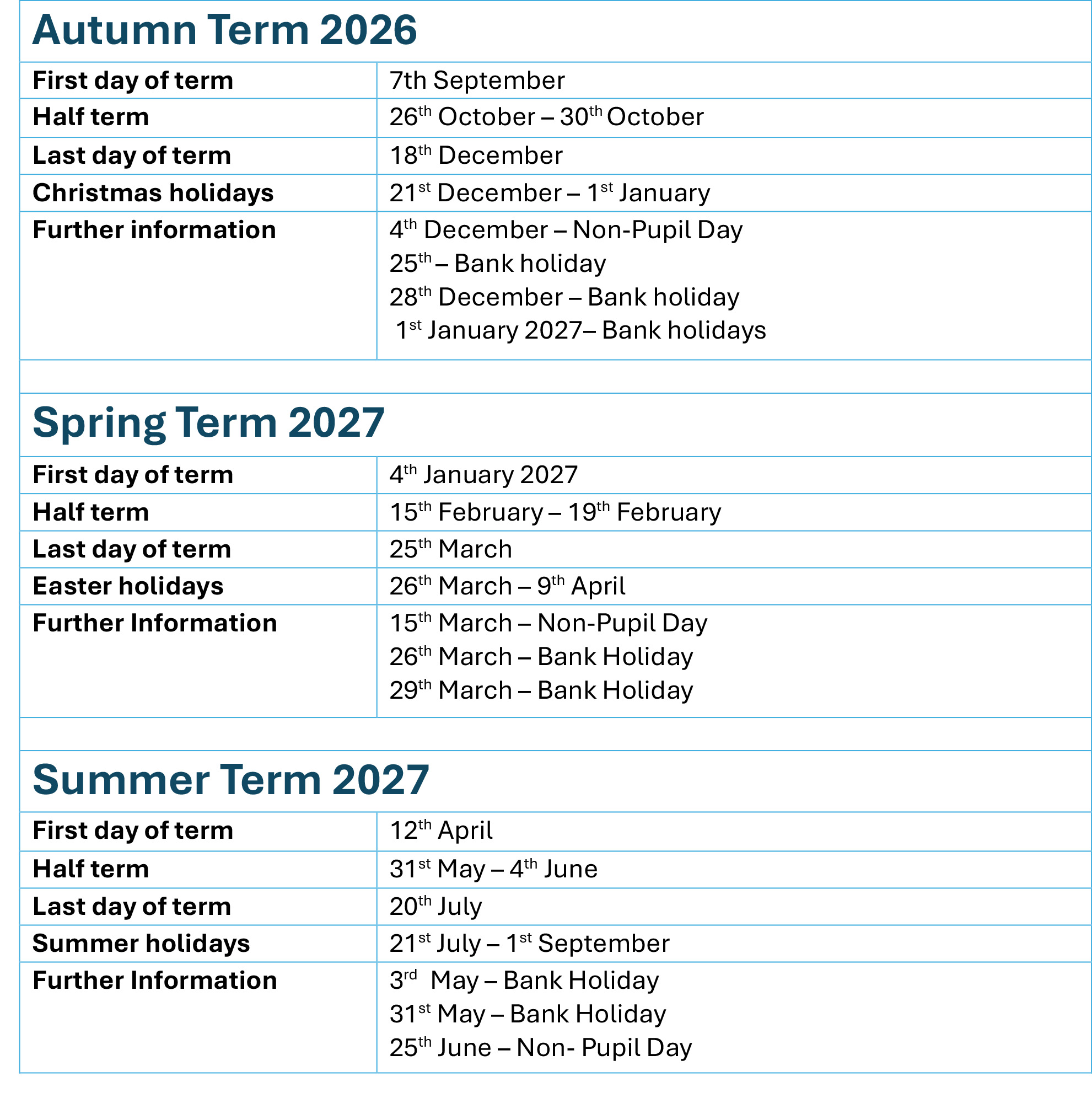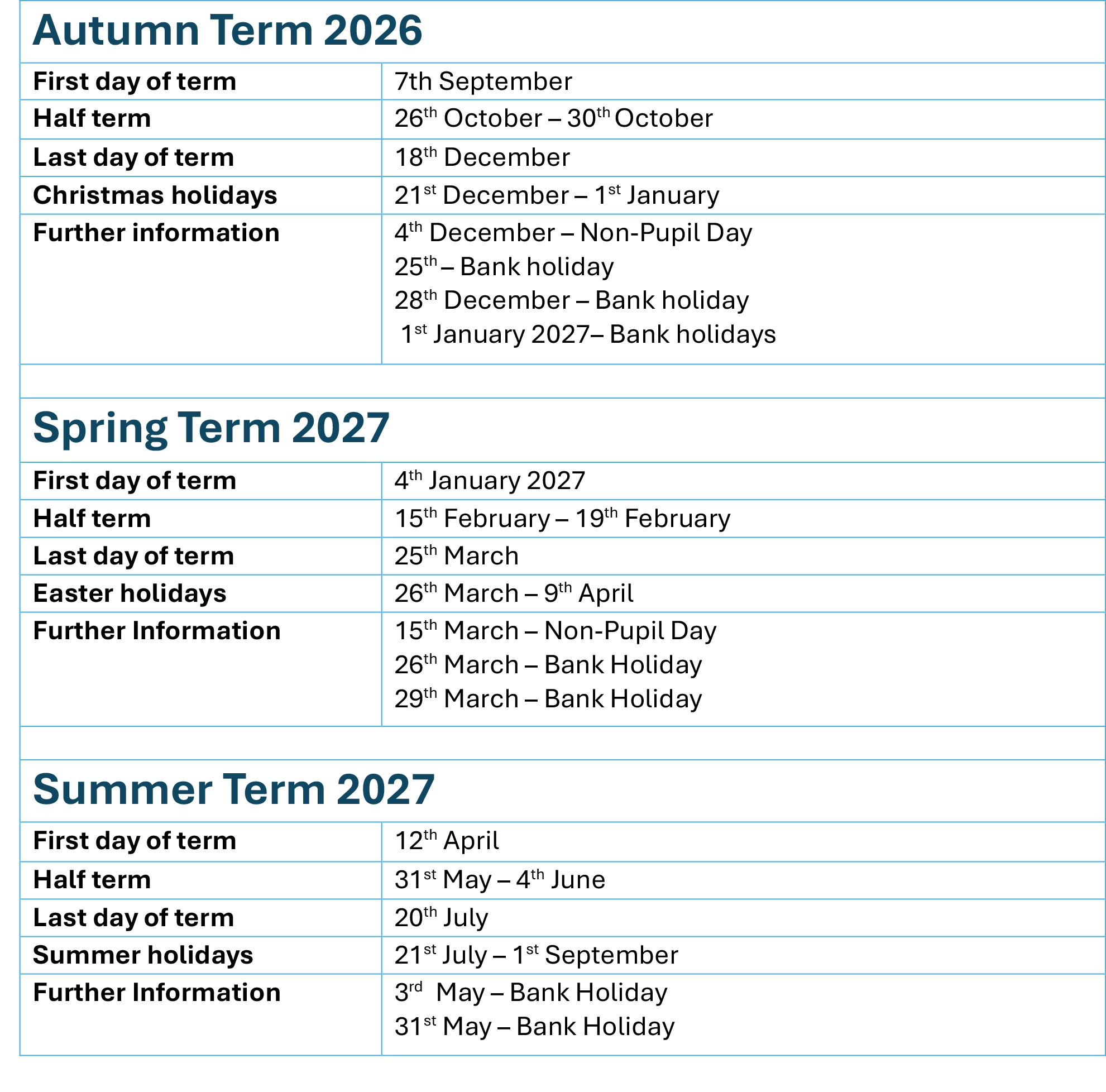 Term Dates 2026-2027