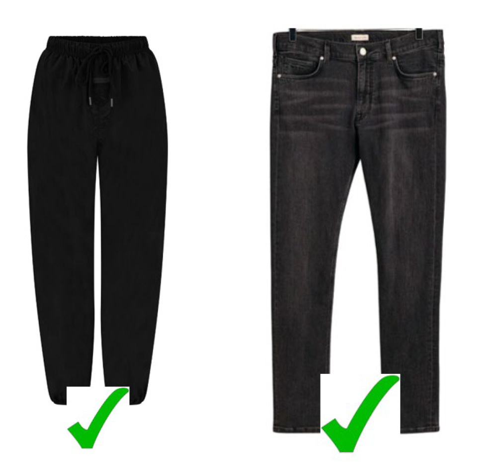 - Black trainers or shoes (No other colours visible on the trainer, No open toe shoes or Crocs)